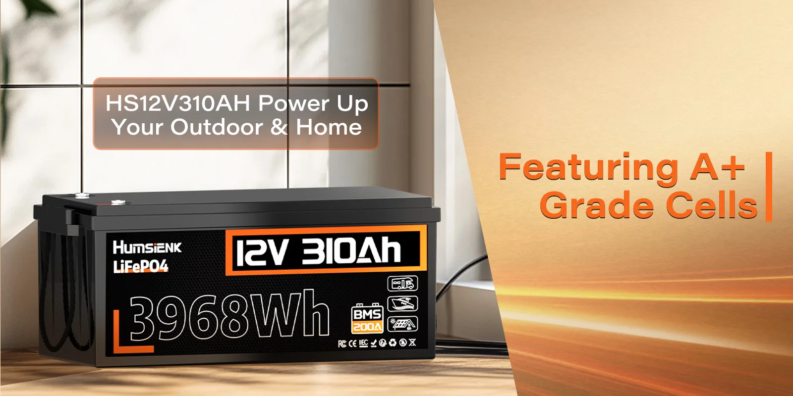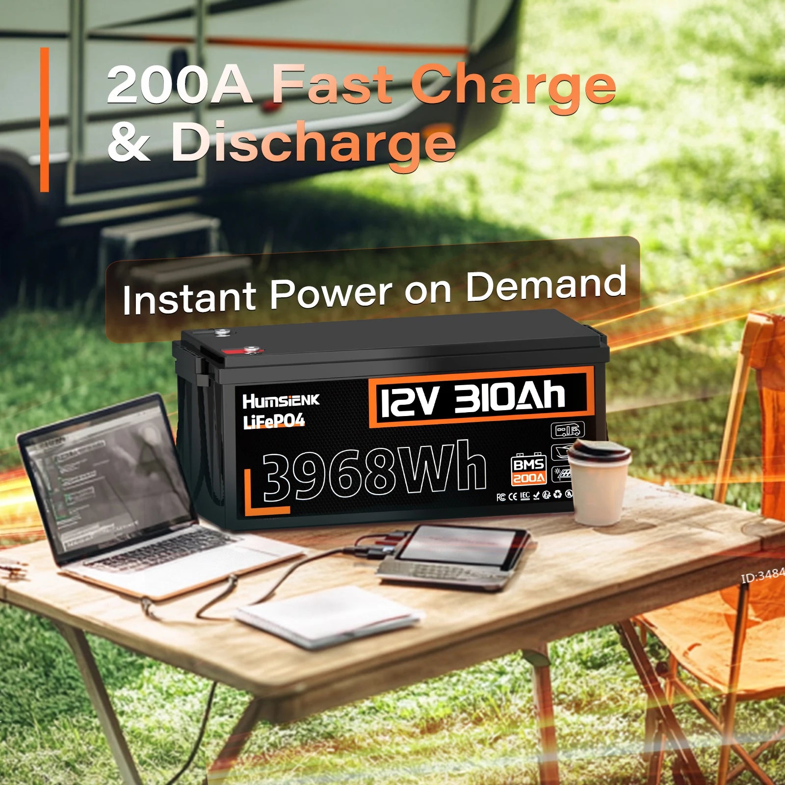 12V 310Ah LiFePO4 Battery 3968Wh Energy 200A BMS 15000 Cycles A+ Cells For RV/ Boat/ Solar Energy/ Off Grid/ Trolling Motor