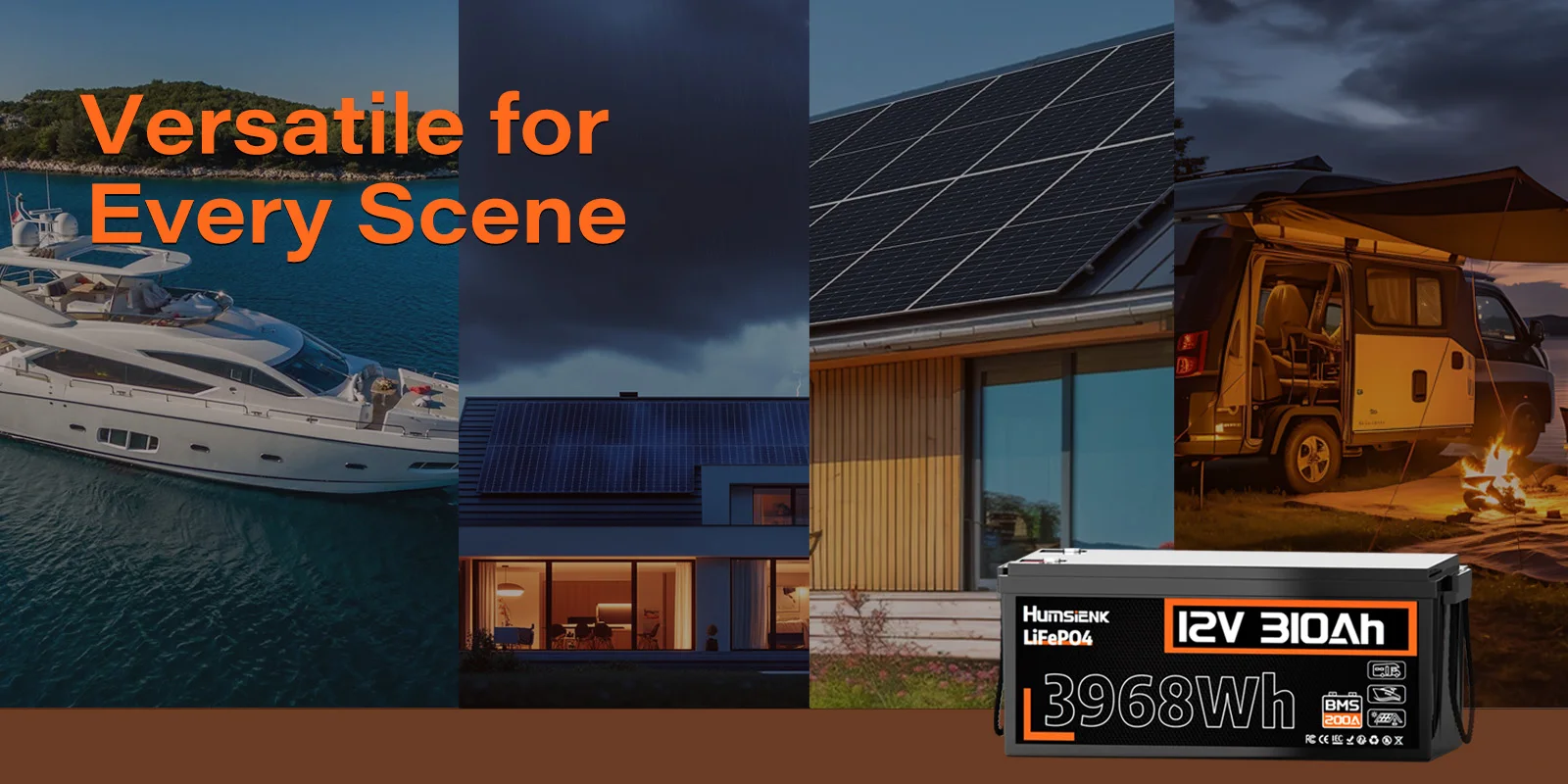 With premium charging technology, HumsiENK 12V 310Ah LiFePO4 battery fully charge only with 1.55 hour. High efficiency output of 3968Wh and a Max. Current of 100A, allow it provide consitent power for your devices.