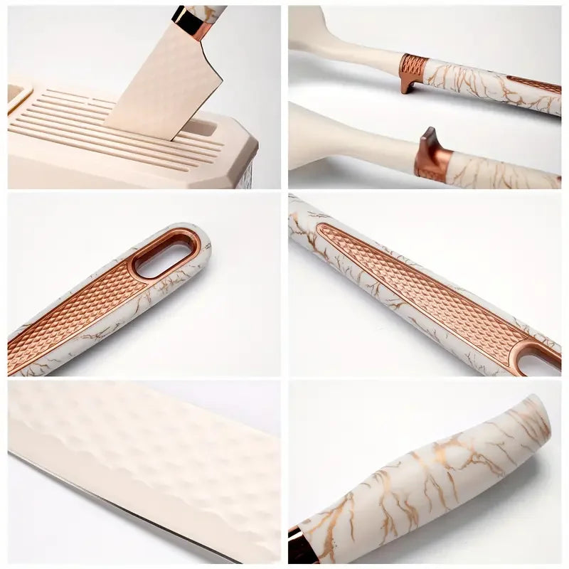 16PCS/Stainless Steel Kitchen Knife Silicone kitchenware set Spatula spoon bread knife scissors peeler cut meat knife Tool rest