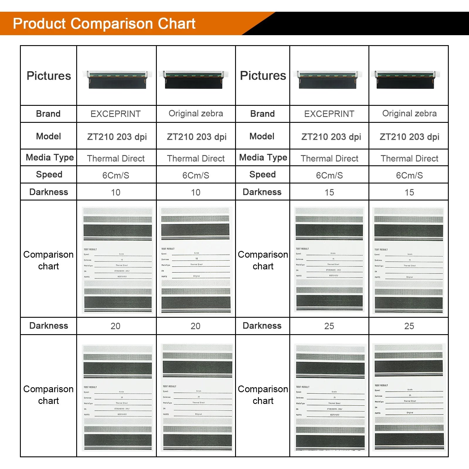 100% new package 203dpi hot print head replacement (P1037974-010). Superior 203dpi printhead replaces the Zebra ZT210 ZT220 ZT230 printer head. Choose EXCEPRINT printhead for durability, affordability, compatibility, craftsmanship and professional customer service.