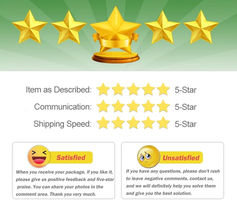 When you receive your package, if you like it, please give us positive feedback and five-star praise. You can share your photos in the comment area. Thank you very much.