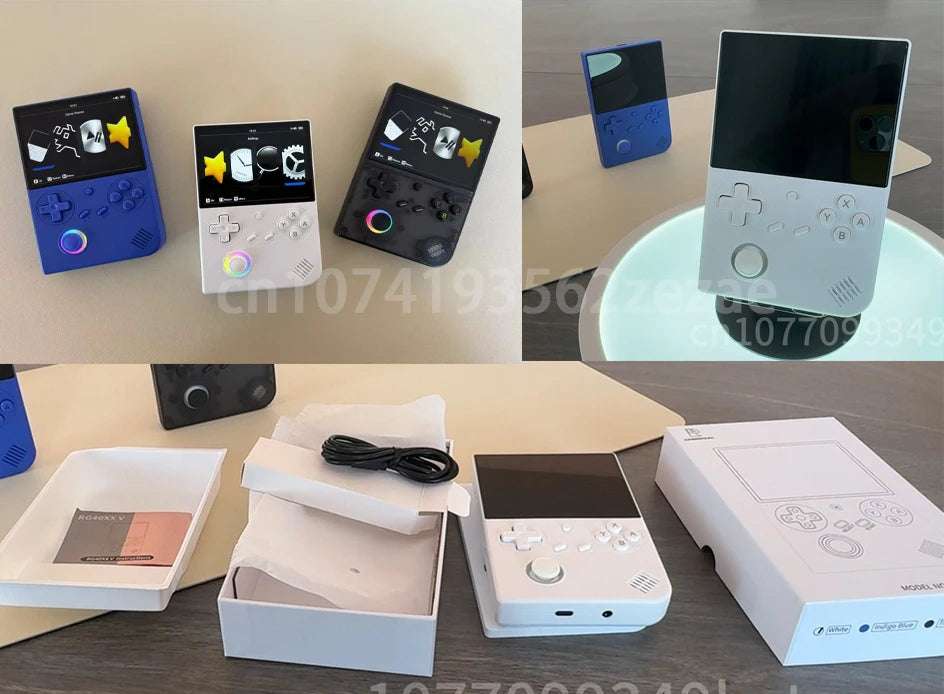 ANBERNIC RG 40XXV new game console, upgraded to Linux 64-bit System, available in three colors: White, Transparent Black, and Indigo Blue.these colors are very novel and convenient, the best choice for traveling!