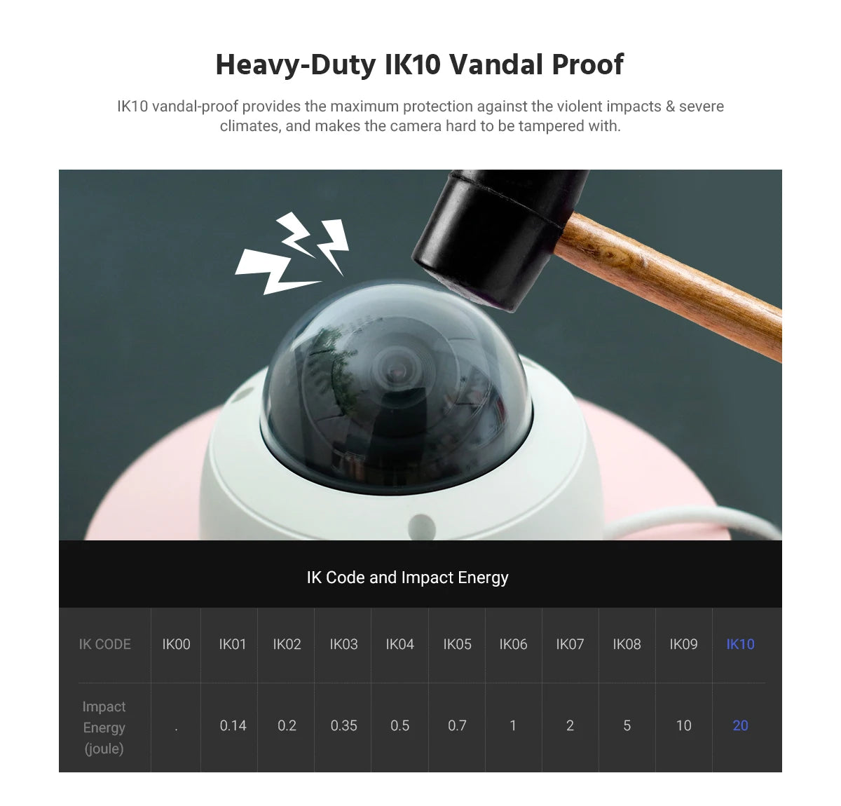 * The IK10 vandal-proof housing protects the camera against violent impacts and severe weather.