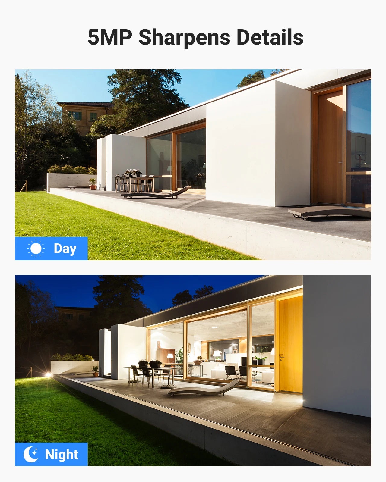 * ANNKE PoE IP security camera, with OmniVision sensor and 2.8 mm professional lens, delivers 5MP Super HD footages (2592 X 1944 pixels) at 20 fps.