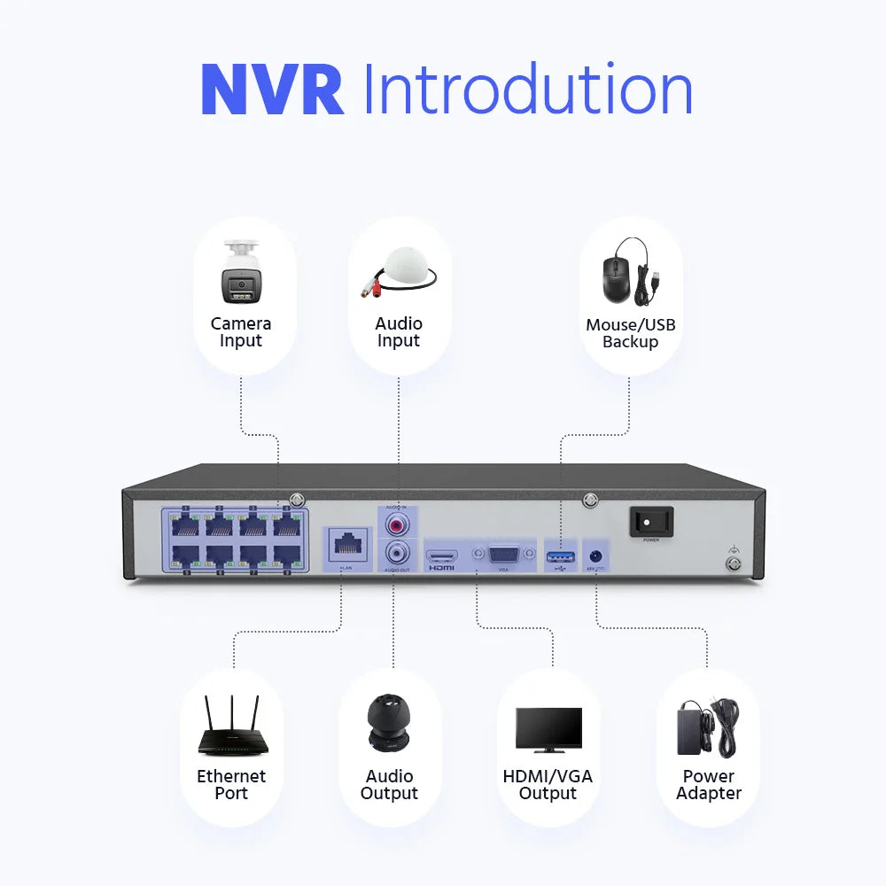 ANNKE 8CH 4K Ultra HD POE Network Video Security System 8MP H.265+ IP Camera Support Two Way Audio human & Vehicle Detection 4MM