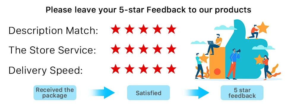 1. Your satisfaction and positive feedback is very important to us, please leave positive feedback and 5 stars if you are satisfied with our items and services.