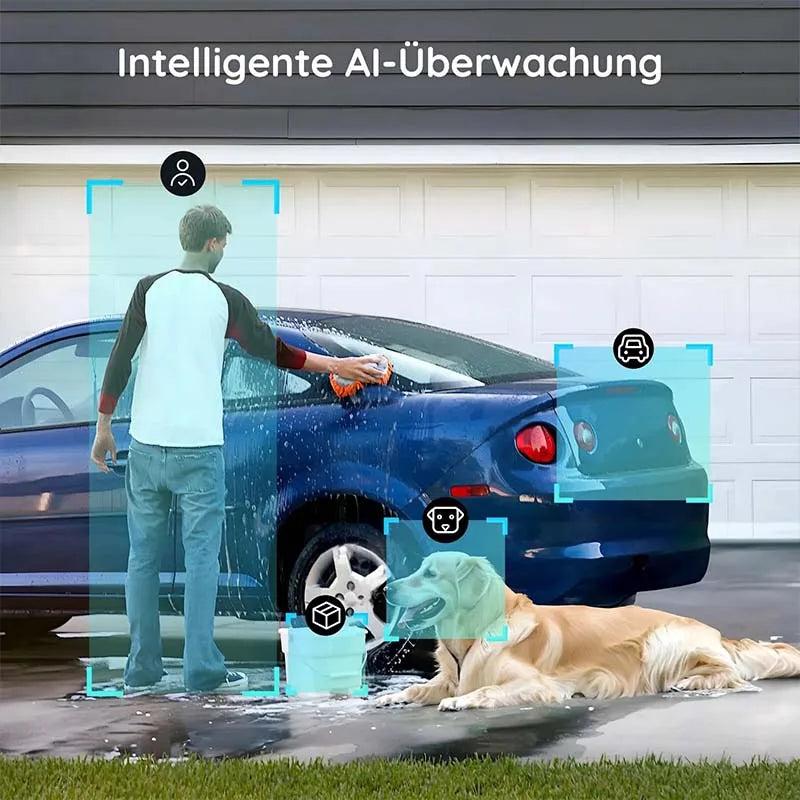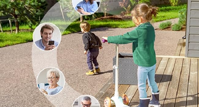 [Motion Detection, App Notification and One-Touch Alarm] The outdoor camera surveillance uses advanced AI algorithms and PIR sensors. It recognises not only human figures, but also vehicles and even animals (optional feature). When you find a suspicious movement, you can set the one-touch alarm function through the APP, the camera will emit a white light or up to 110 decibels of alarm sound, effectively stopping uninvited guests. Simply scan the QR code to share the screen with your family via the app (Alexa compatible). As a trusted home security camera. Promise to protect your privacy absolutely.