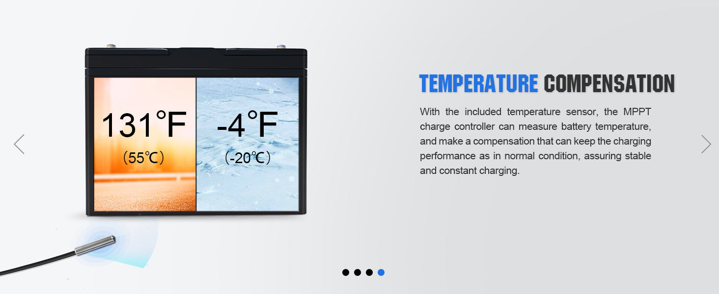 [ 99% Efficient MPPT Technology ] Maximum Power Point Tracking technology with a high tracking efficiency of up to 99% and peak conversion efficiency of 98%. It can keep a stable charging current even on cloudy days, making no waste of any sunlight