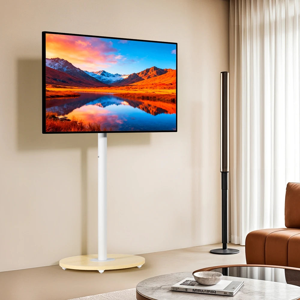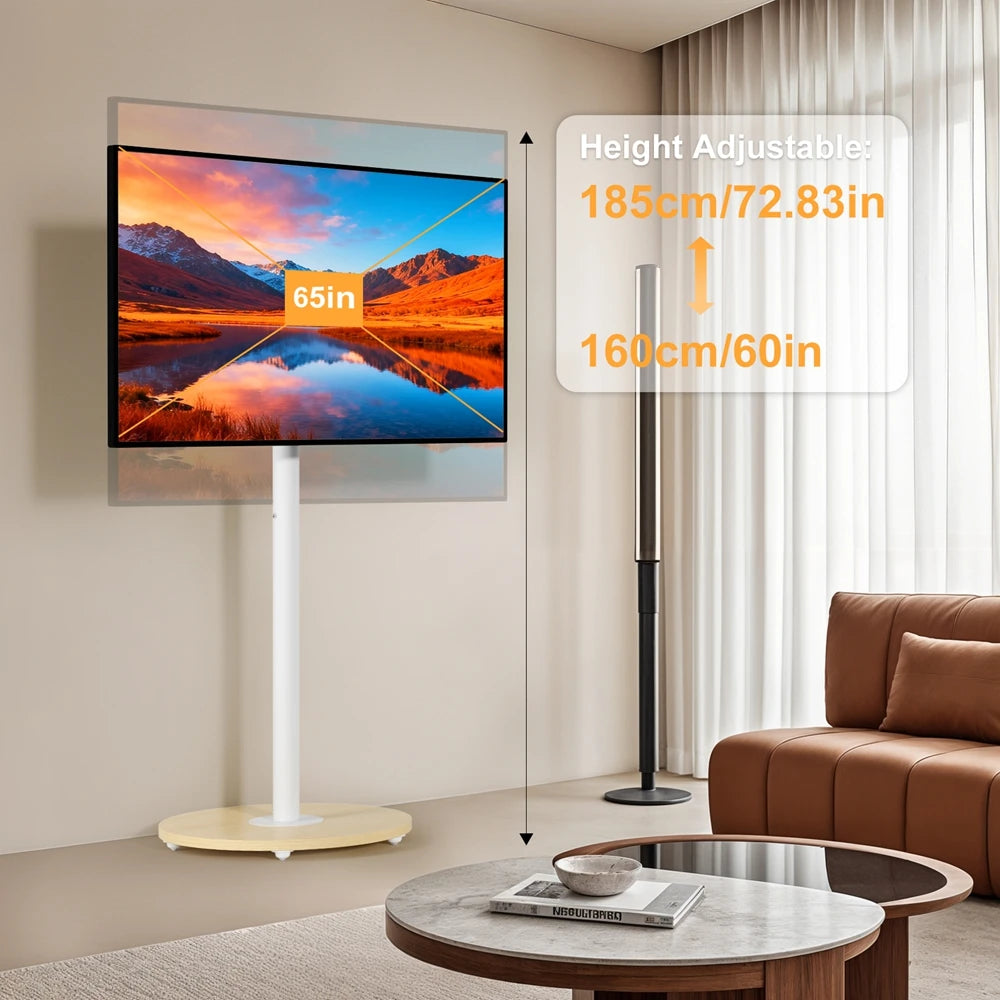 Heavy Duty Mobile TV Floor Stand for 40-75 Inches White Height Adjustable TV Mount Cart Stand with Hidden Wheels