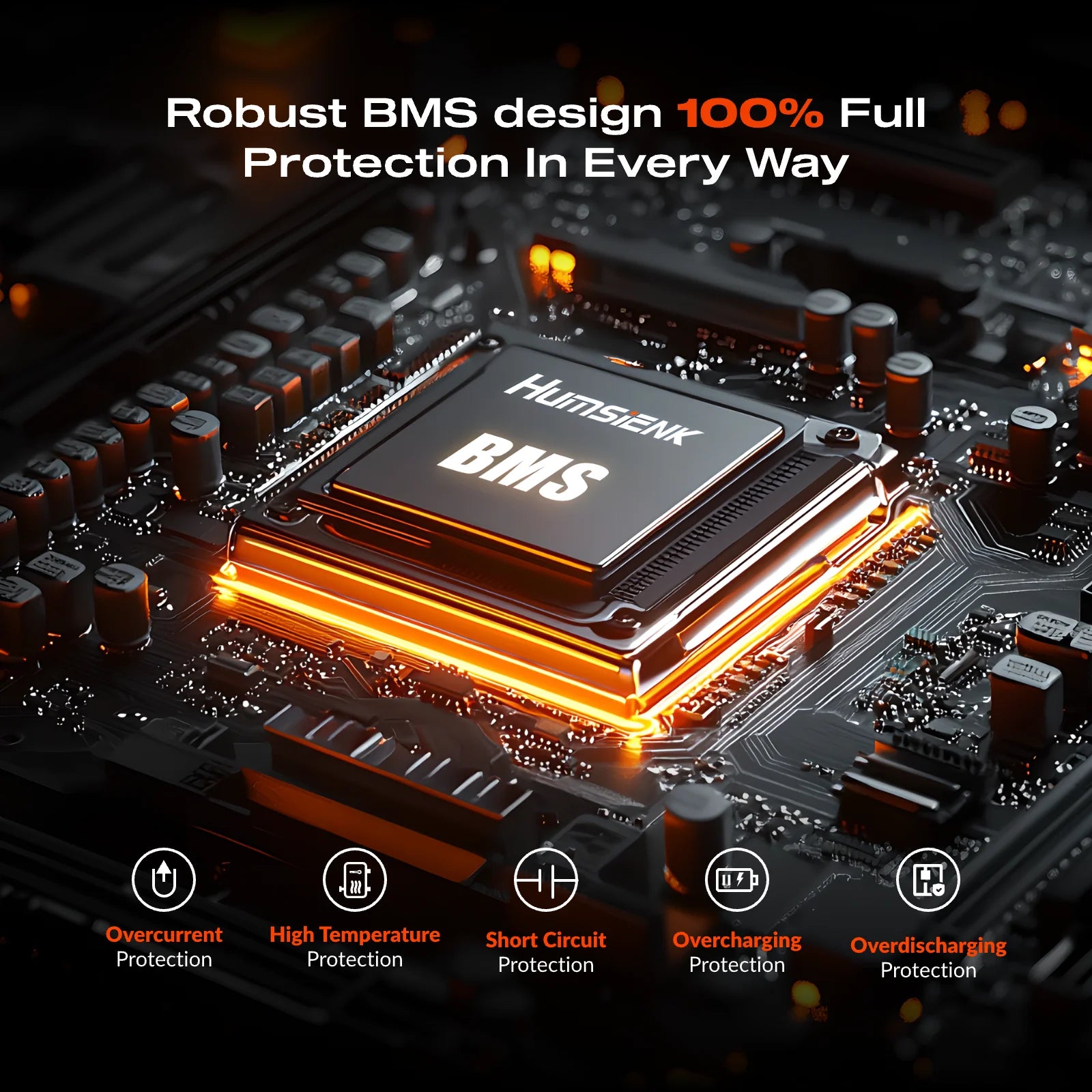 The Humsienk LiFePO4 battery offers a 100Ah capacity and standard voltage of 12.8V. With A+ grade cells, it boasts an impressive lifespan of up to 20,000 cycles. SDS/UN38.3/FCC/CE/ROHS certifications ensure its quality and safety.