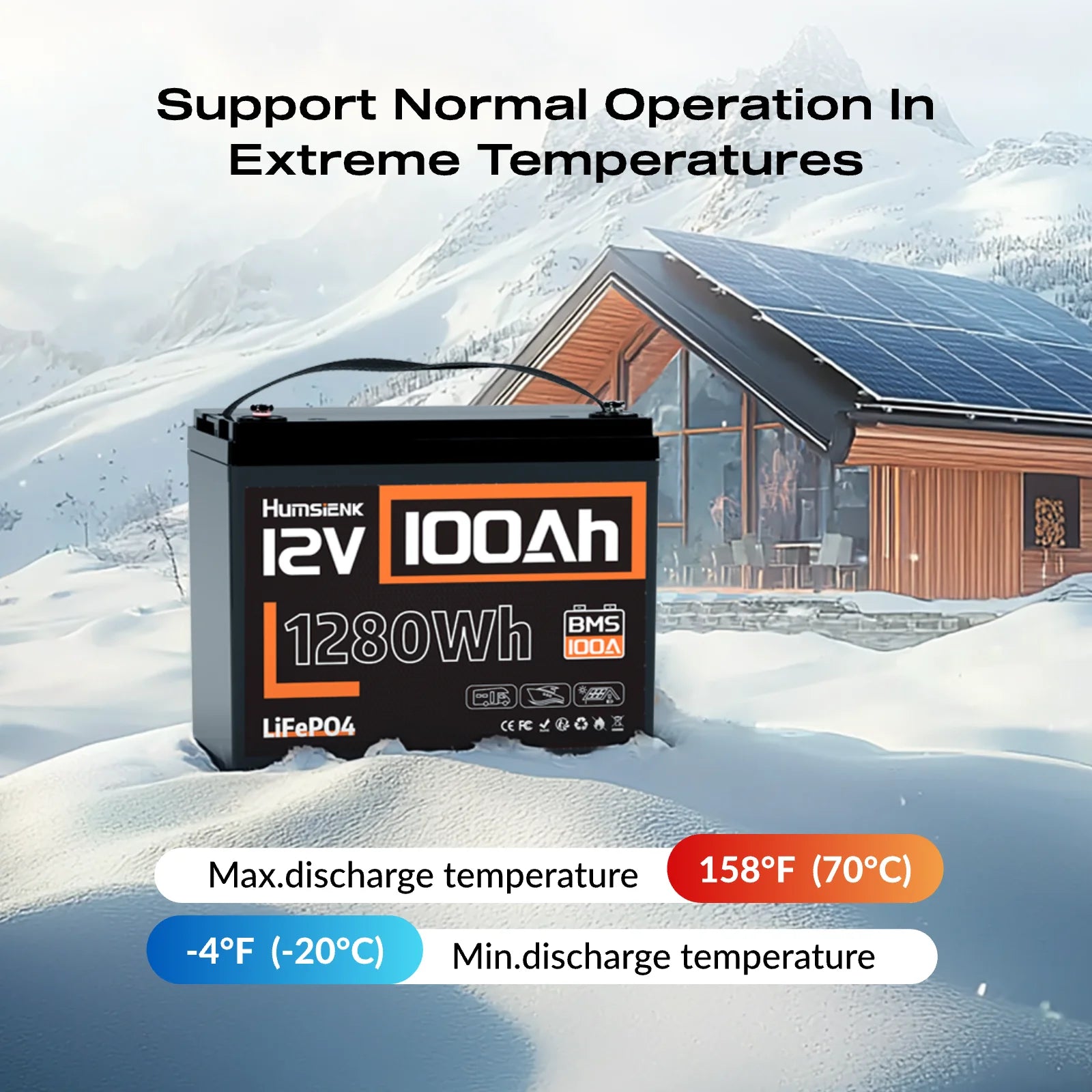 Humsienk LiFePO4 Lithium Battery 12V 100Ah Low-Temp Protect Built-in 100A BMS 15000 Cycles For Vans,Golf Cart,Boat,RV,Camp,GP24