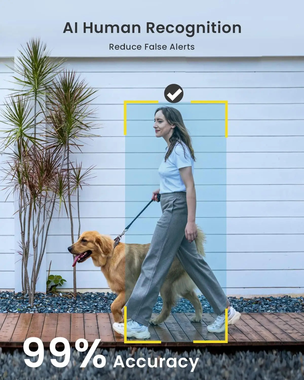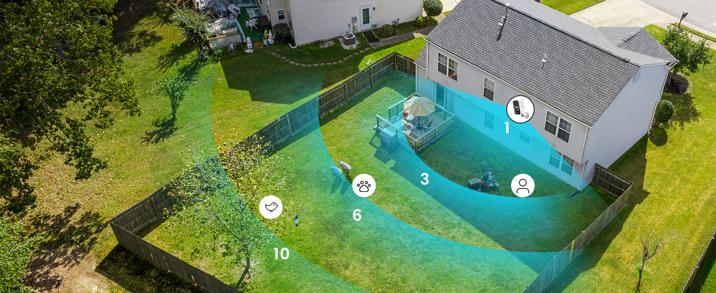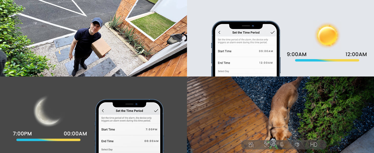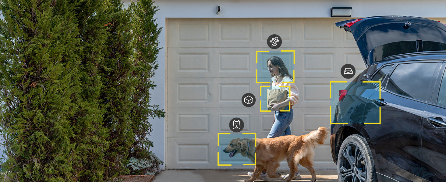 • AI & PIR Motion Detection & Real-time Alarm Notification - Latest wifi camera AI/PIR quick response mechanism identifies people and sends alarm notifications (0.2s-3s). When motion is detected, it sends instant alarm notifications, records alarm video and audio, and activates an alarm sound and spotlight to deter unwanted visitors.
