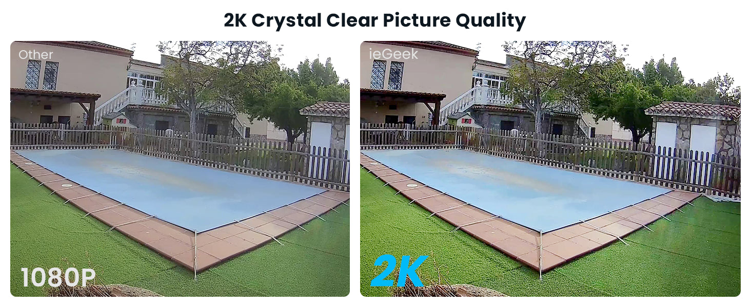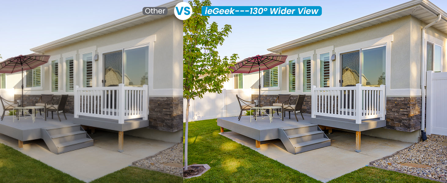 • 2K QHD Video & 33ft Color Night Vision - The ieGeek ZS-GX3S camera offers a high-resolution 3MP image quality, 1.5 times more detail than traditional 1080p cameras. 2 PIR LEDs and 2 white lights, 130° wide-angle lens and 33ft night vision range, allowing you to monitor more distant, wider and clearer environments, day or night.