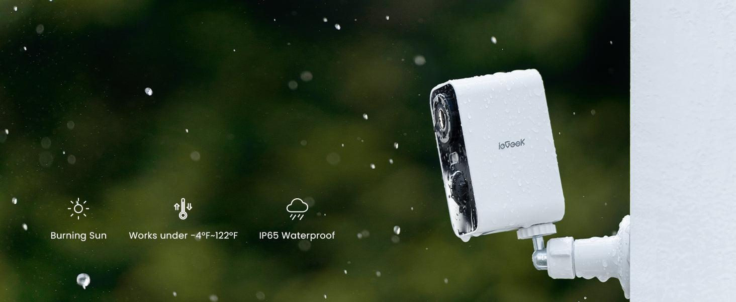 • 100% Feature Free & IP65 Waterproof - The features of "ieGeek Cam" APP are all free, no subscription fees, lots of custom features, support Alexa; ieGeek outdoor camera has been completely upgraded rubber ring to improve airtightness, waterproof effectively increased by 50%, easily withstand rain and snow.