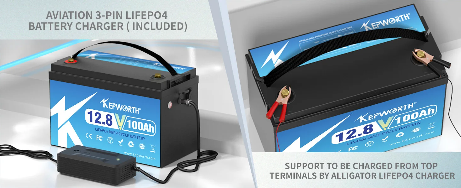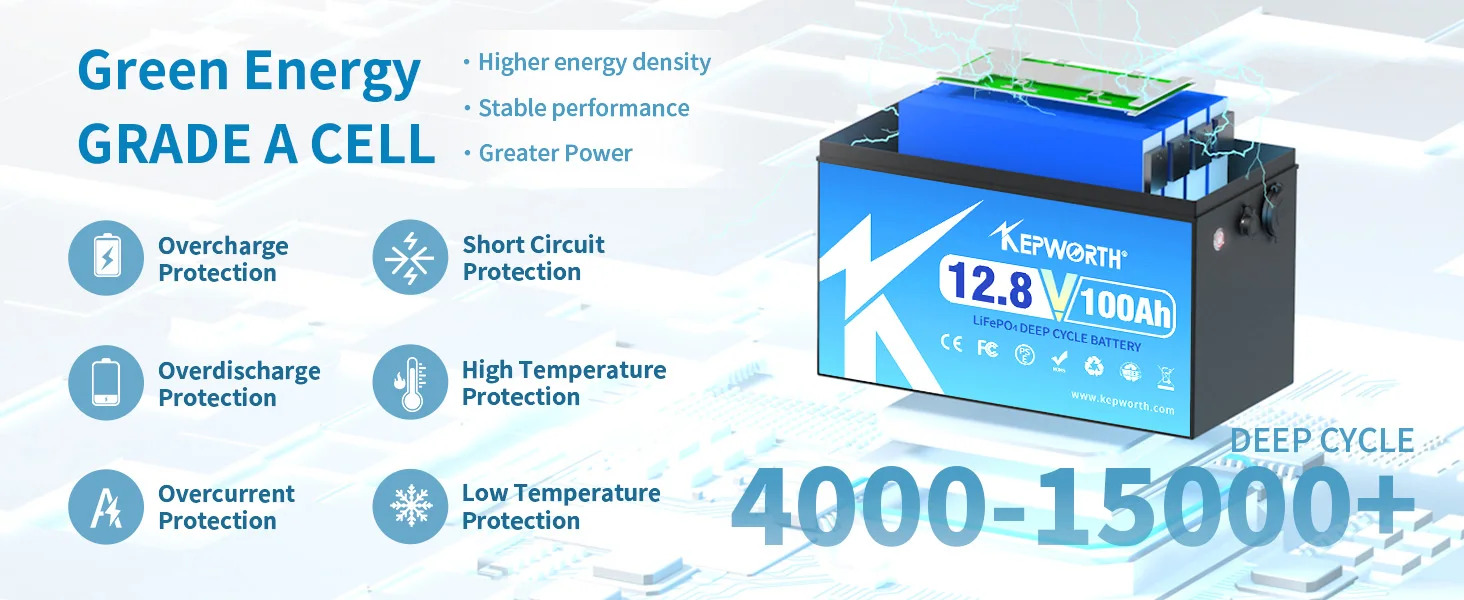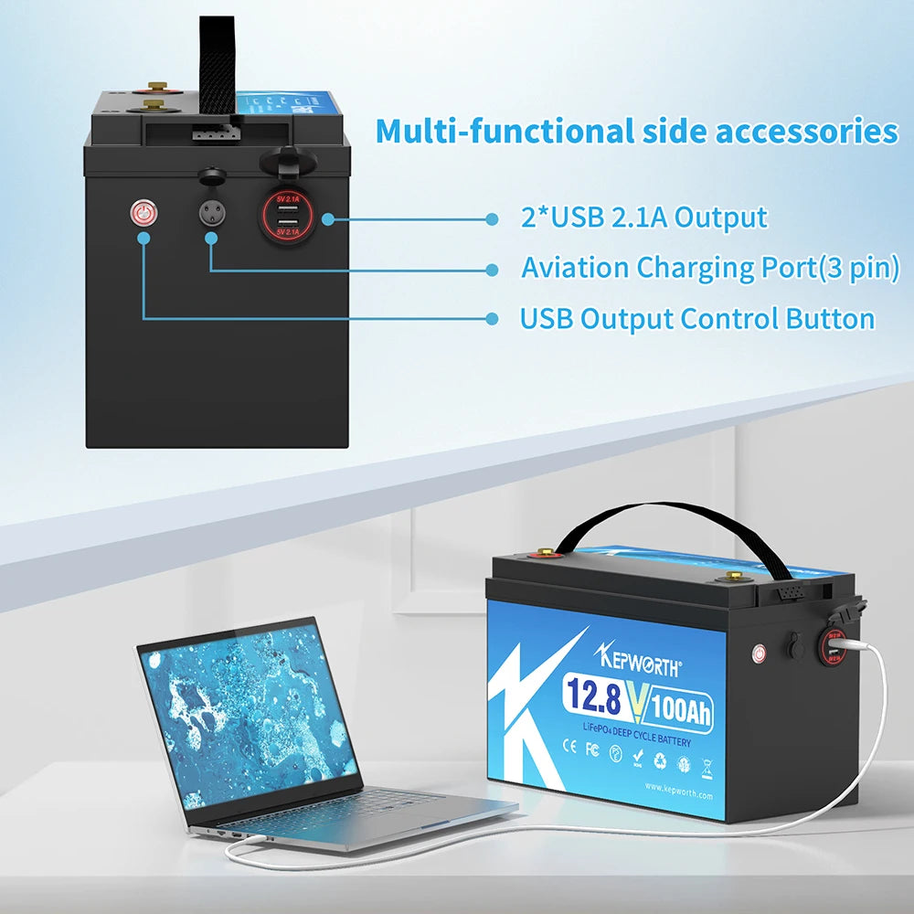 KEPWORTH 12V 100Ah LiFePO4 Battery Built-in 100A upgraded BMS Lithium Power Batteries For RV Campers Golf Cart Off-Road Off-Grid