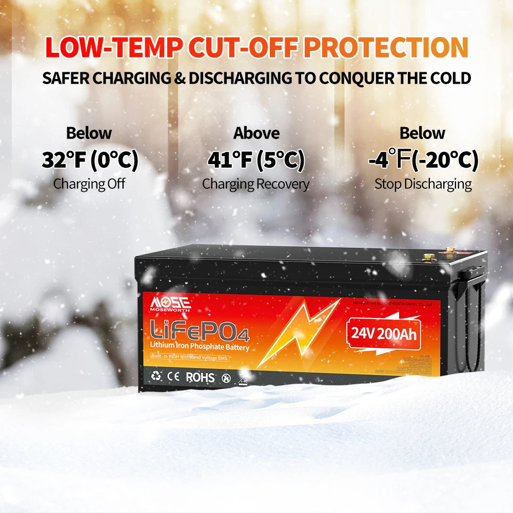 MOSEWORTH 24V 200Ah LiFepo4 Battery Built in 200A BMS Rechargeable Lithium Batteries for Boat Marine RV Solar Trolling Motor