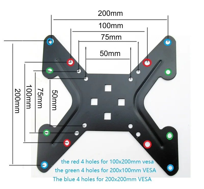 Standard VESA: 75x75,100x100,200x100,200x200