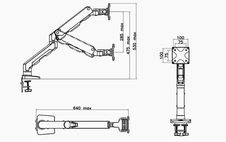 • VESA compliant 75x75, 100x100 mm