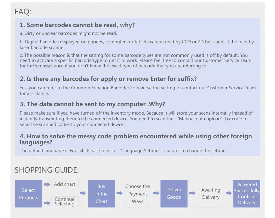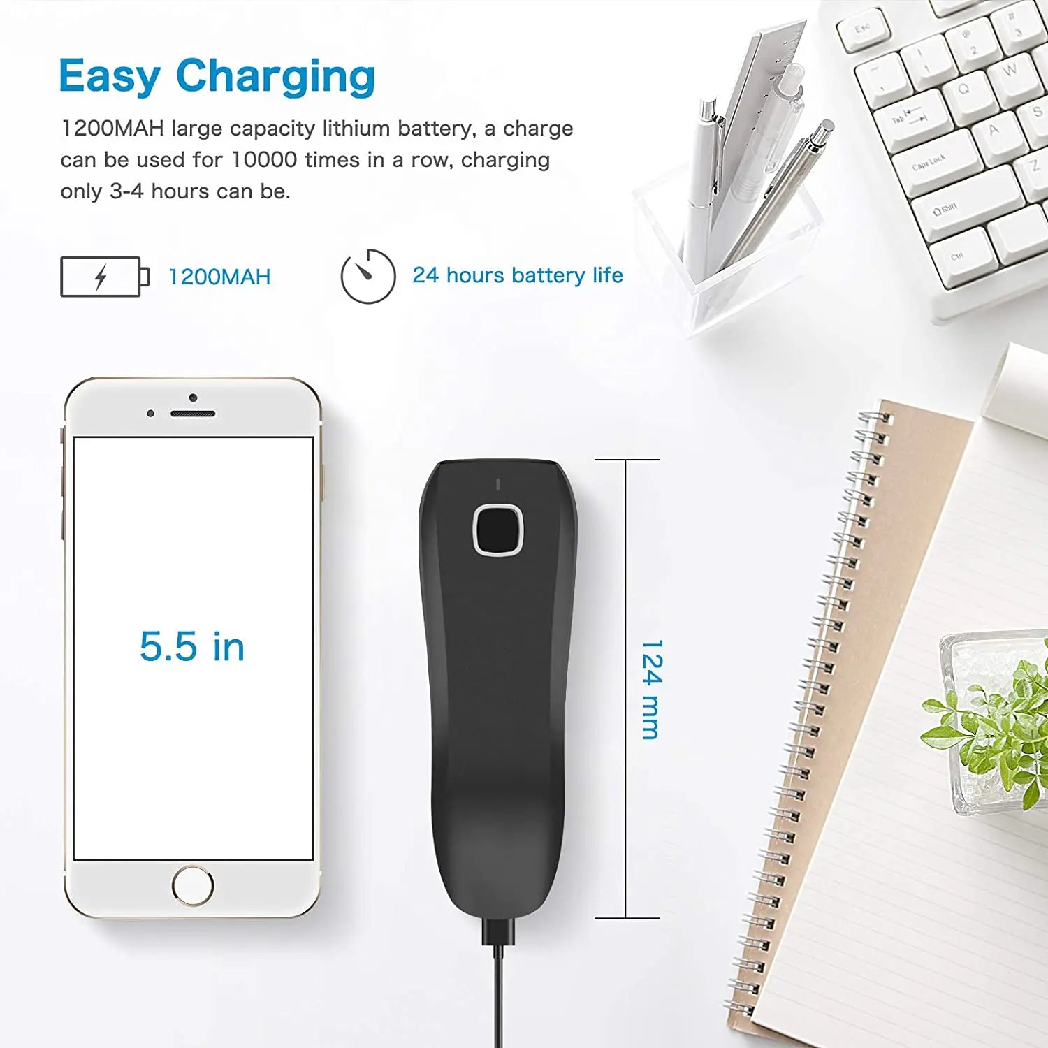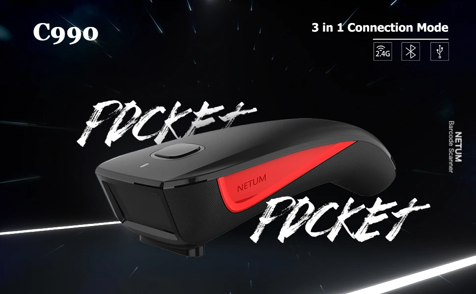 3-in-1 Connection Design The Pocket bar code scanner comes with 3-in-1 Connection Design:Compatible with Bluetooth Function; 2.4G Wireless connection receiver; Wired connection.
