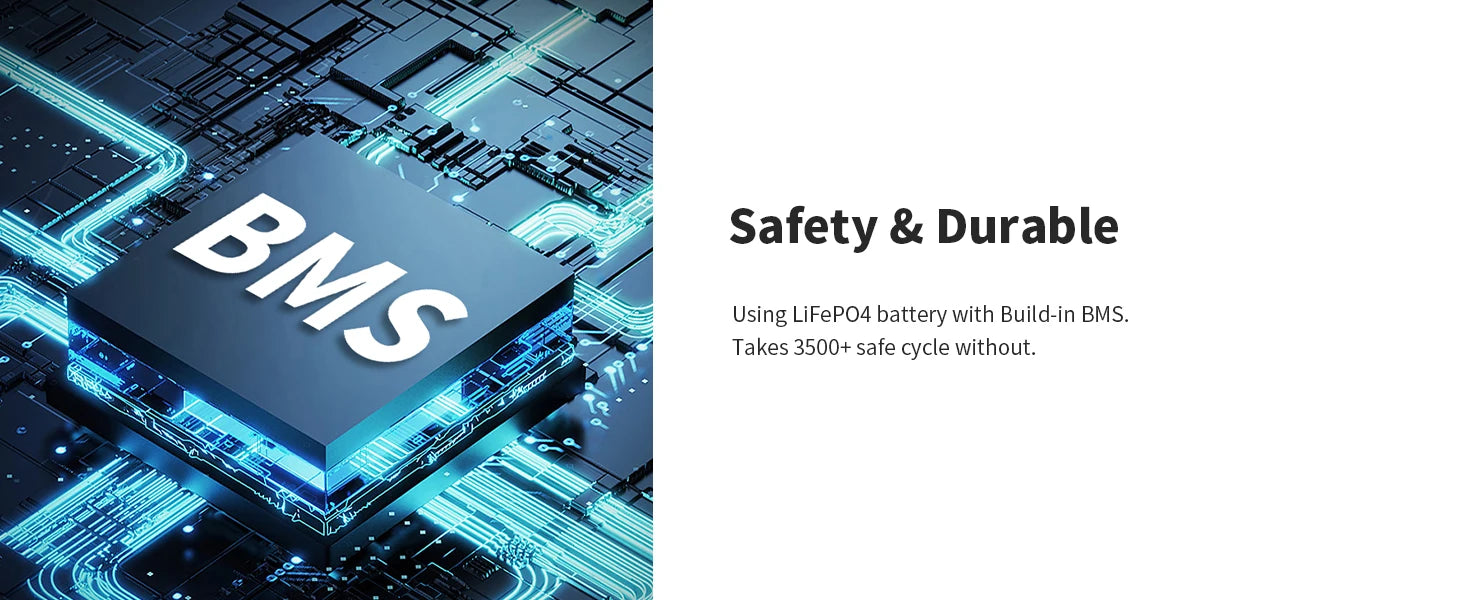• Safety &Durable: The ultra-safe LiFePO4 battery with Built-in BMS assures the self-protection of short circuits, overloads, and overheating. 120V Pure-sine wave inverter makes sure there is no damage to your sensitive electronic devices