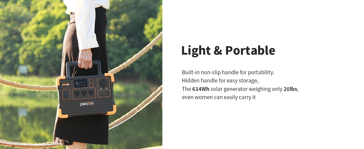 pecron E600LFP Portable Power Station 614Wh Solar Generator with 3X1200W AC Outlets LiFePO4 Battery Backup for Outdoor Camping