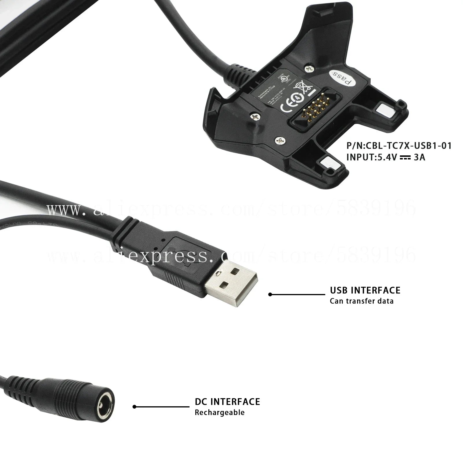 Package: Power Charger for Zebra Motorola Symbol TC70 TC70X TC72 TC75 TC75X TC77 CBL-TC7X-USB1-01 Charging Cable with Adapter X 1pcs