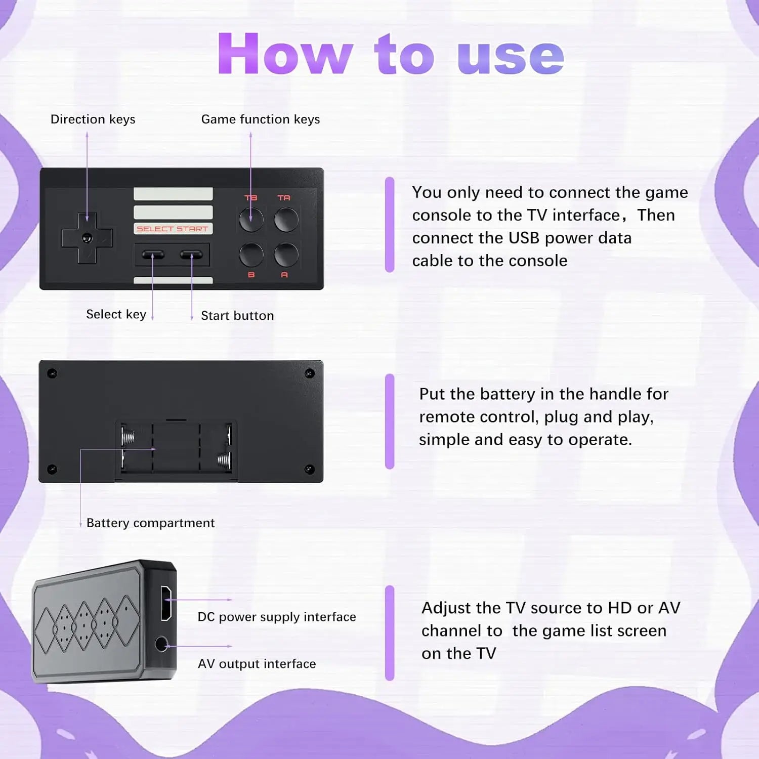 Retro Gaming Console, Wireless Video Game System, Built-in 620 Games Dual-Player Mode Console with 2 Controllers, Holiday Gift