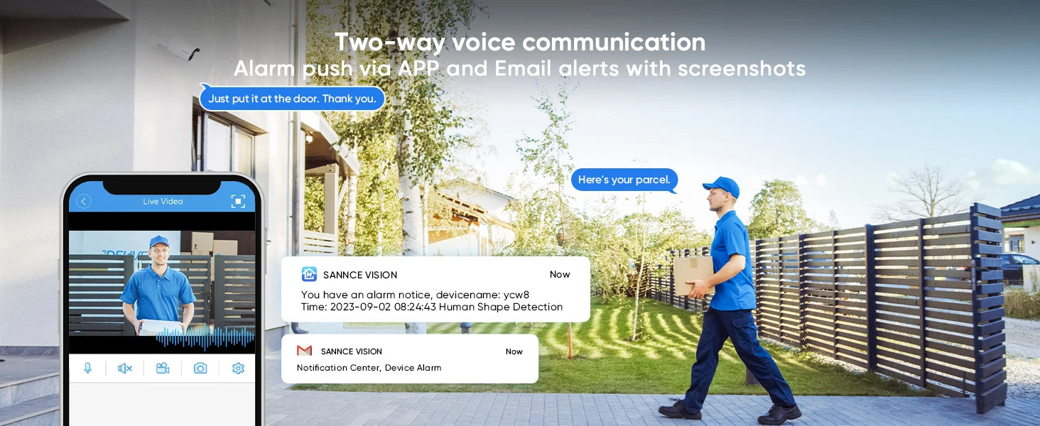 Supports humanoid detection, humanoid picture frame, humanoid intelligent playback, APP and Email mobile alarm push, and Email alarm with screenshots