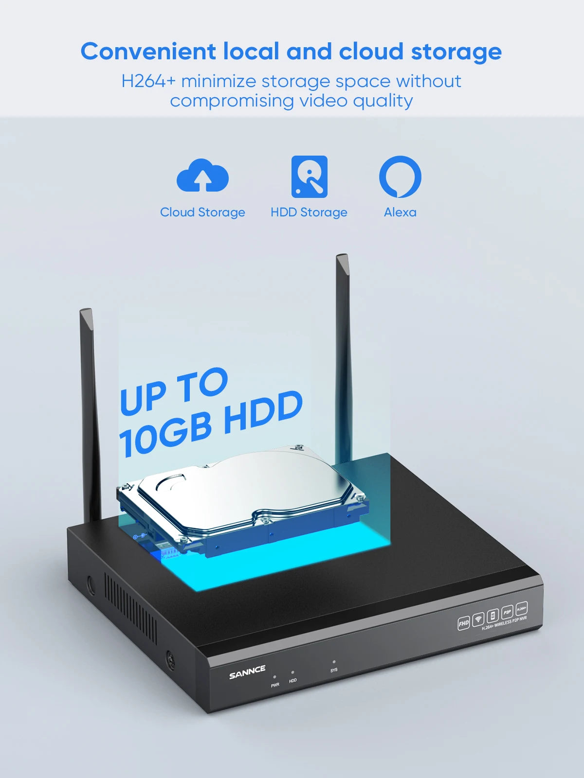 Supports local storage and cloud storage, local hard disk storage supports up to 10TB