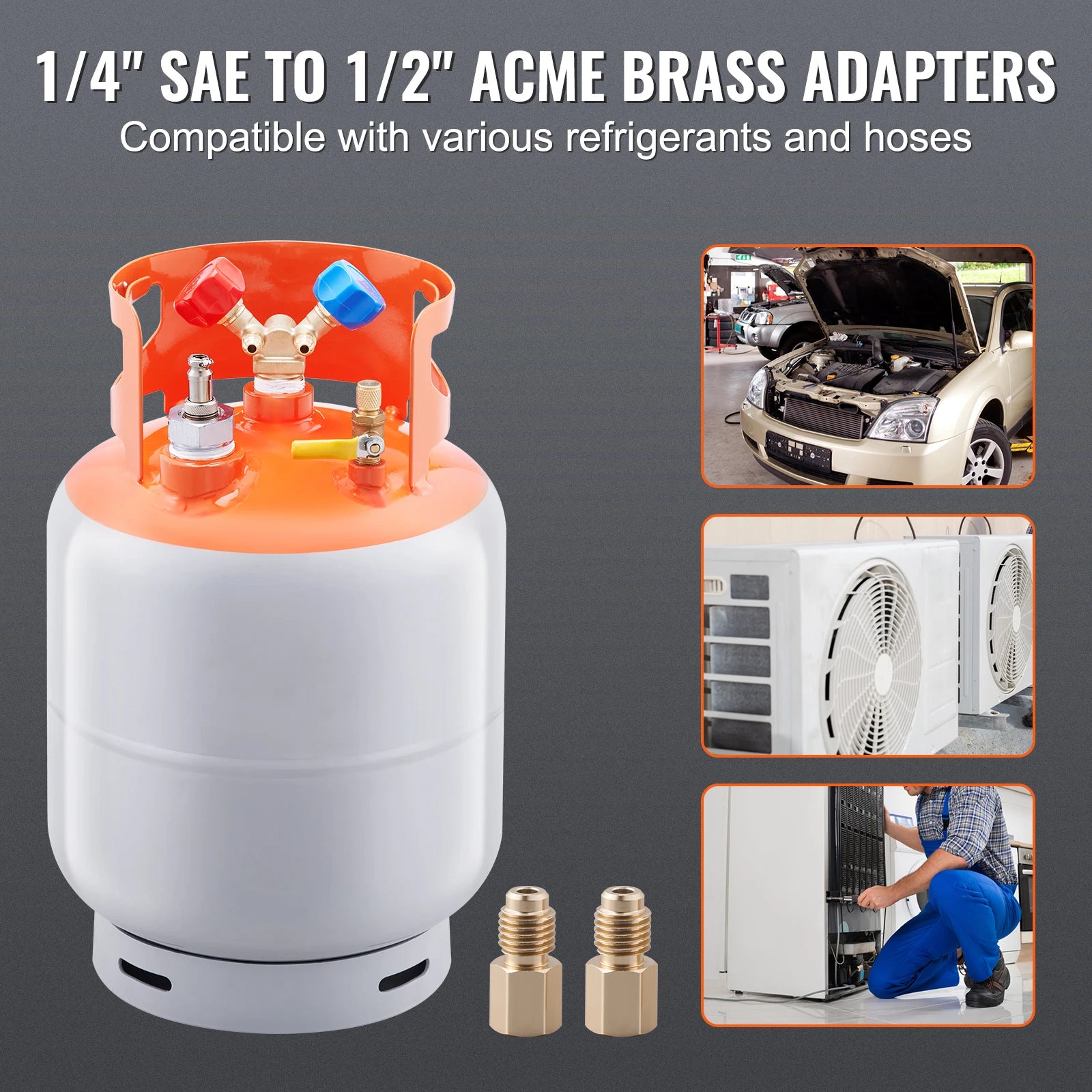 • Strong Compatibility: The built-in 1/4" SAE interface valve can be adapted to fit most hose sizes, thanks to the inclusion of 2 1/4" SAE to 1/2" ACME brass adapters. Perfect for use with old household air conditioners, the tight connection at the interface minimizes the risk of leakage.