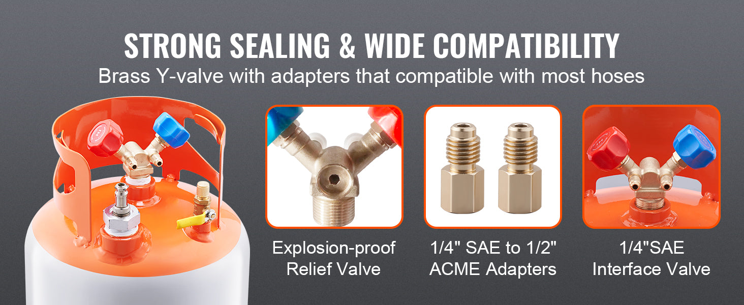 • Explosion-proof & Non-leakage: Featuring an integral forming brass Y-valve with strong sealing capabilities, it can efficiently recover and discharge both liquid and steam. And, with the included pressure relief valve, you never have to worry about high pressure. If the tank's working pressure is exceeded, the valve will automatically relieve pressure for a safer user experience.