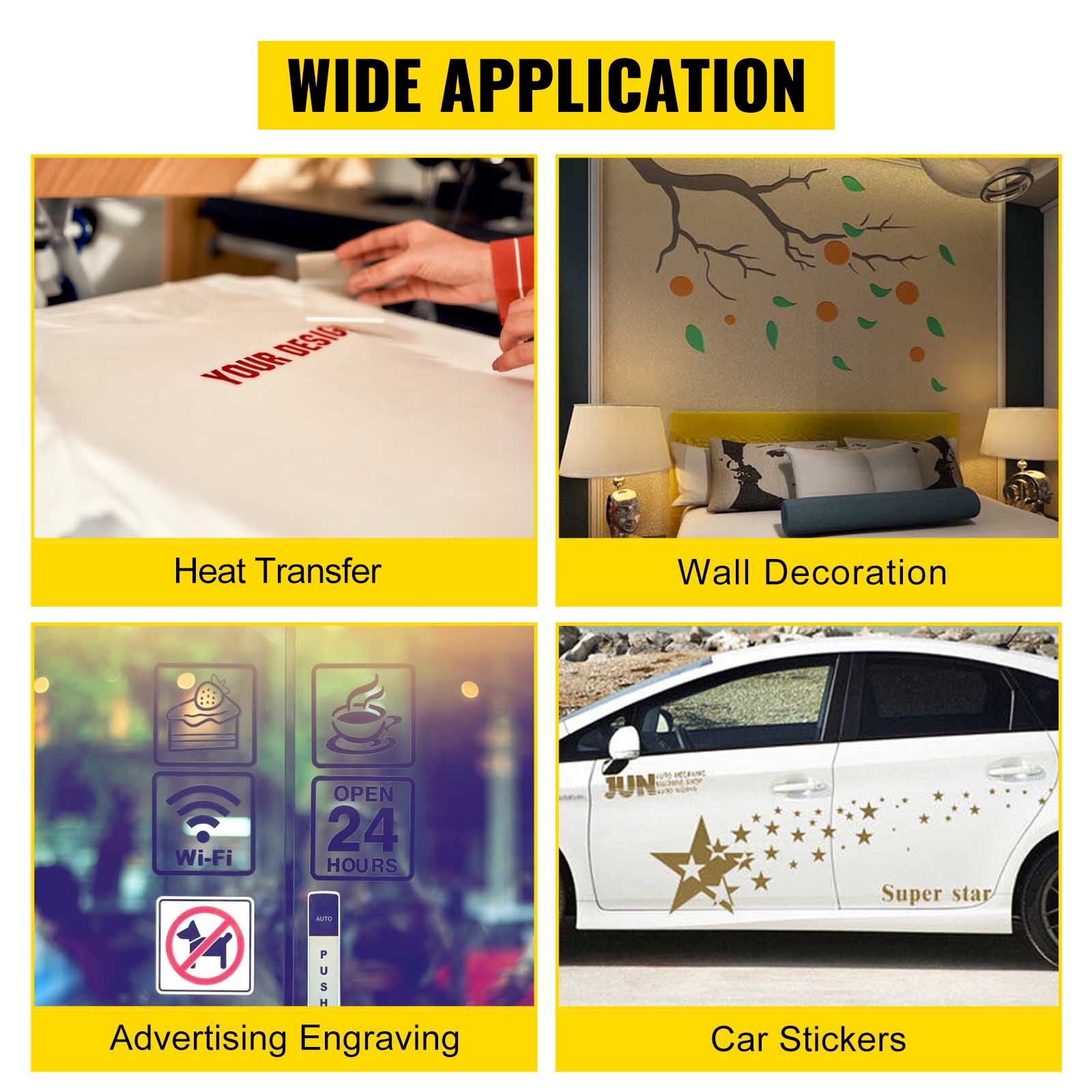 Wide Application: This machine can cut various materials such as heat transfer vinyl, paper, craft paper, card stock, and paint masks. Extensively used in advertising, decoration, DIY, label, and logo making.