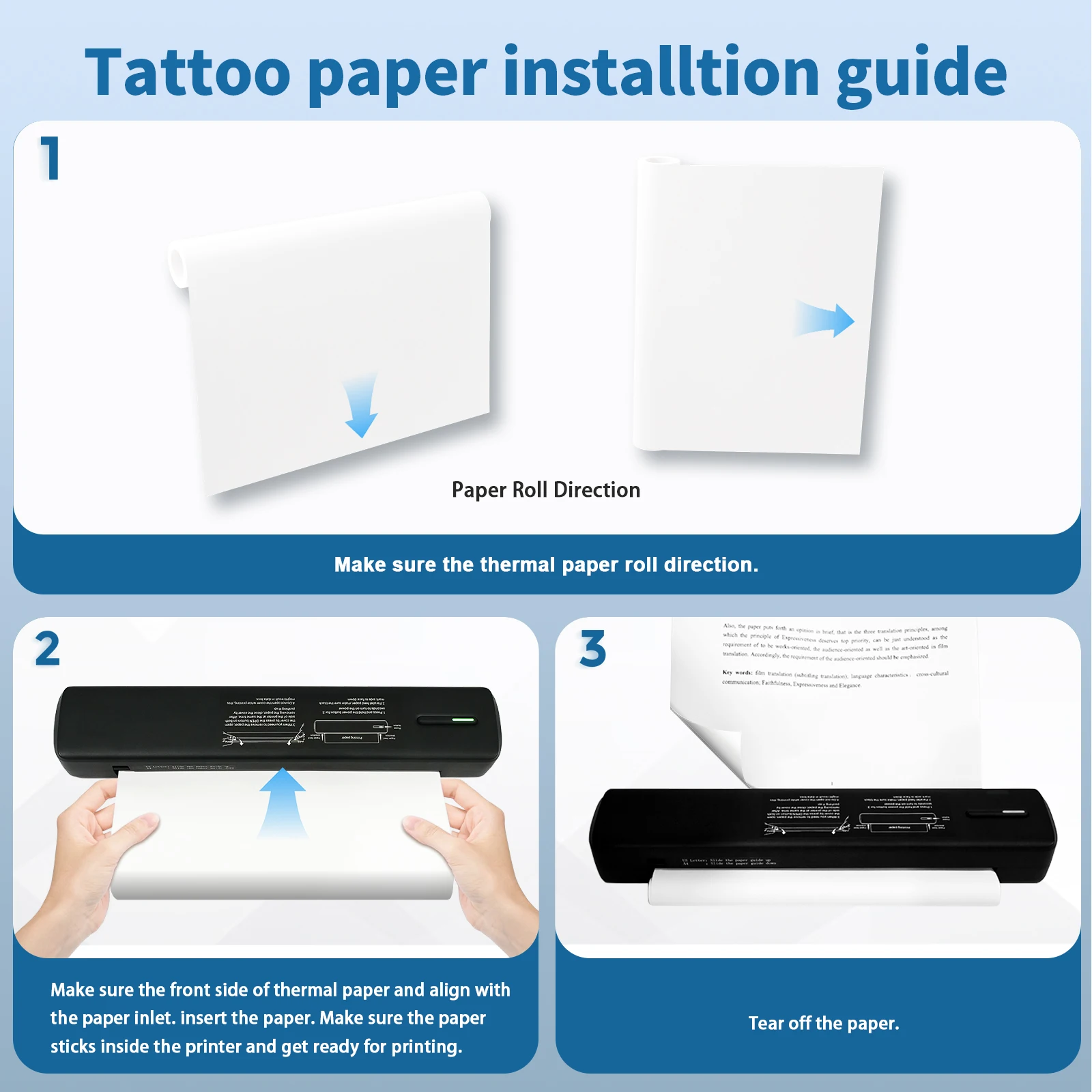 Thermal Printer Inkless Wireless A4 C80 300DPI 1500mAh BT Mobile Printing iOS/Android/Laptop For Tattoo Artists Enthusiasts