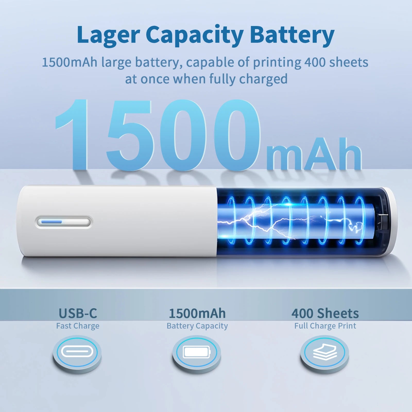 Long Battery Life: Equipped with a 2600mAh battery, this printer ensures extended use, making it perfect for traveling or working remotely.