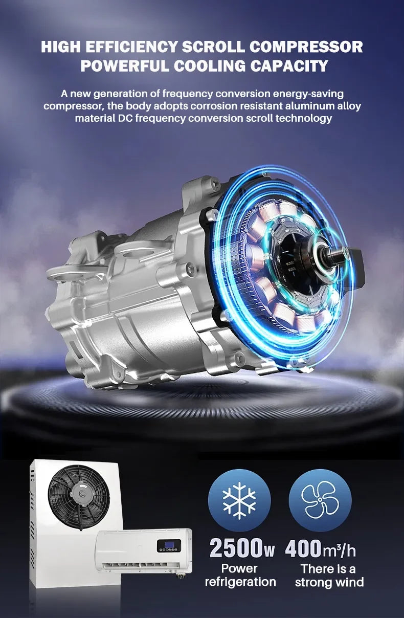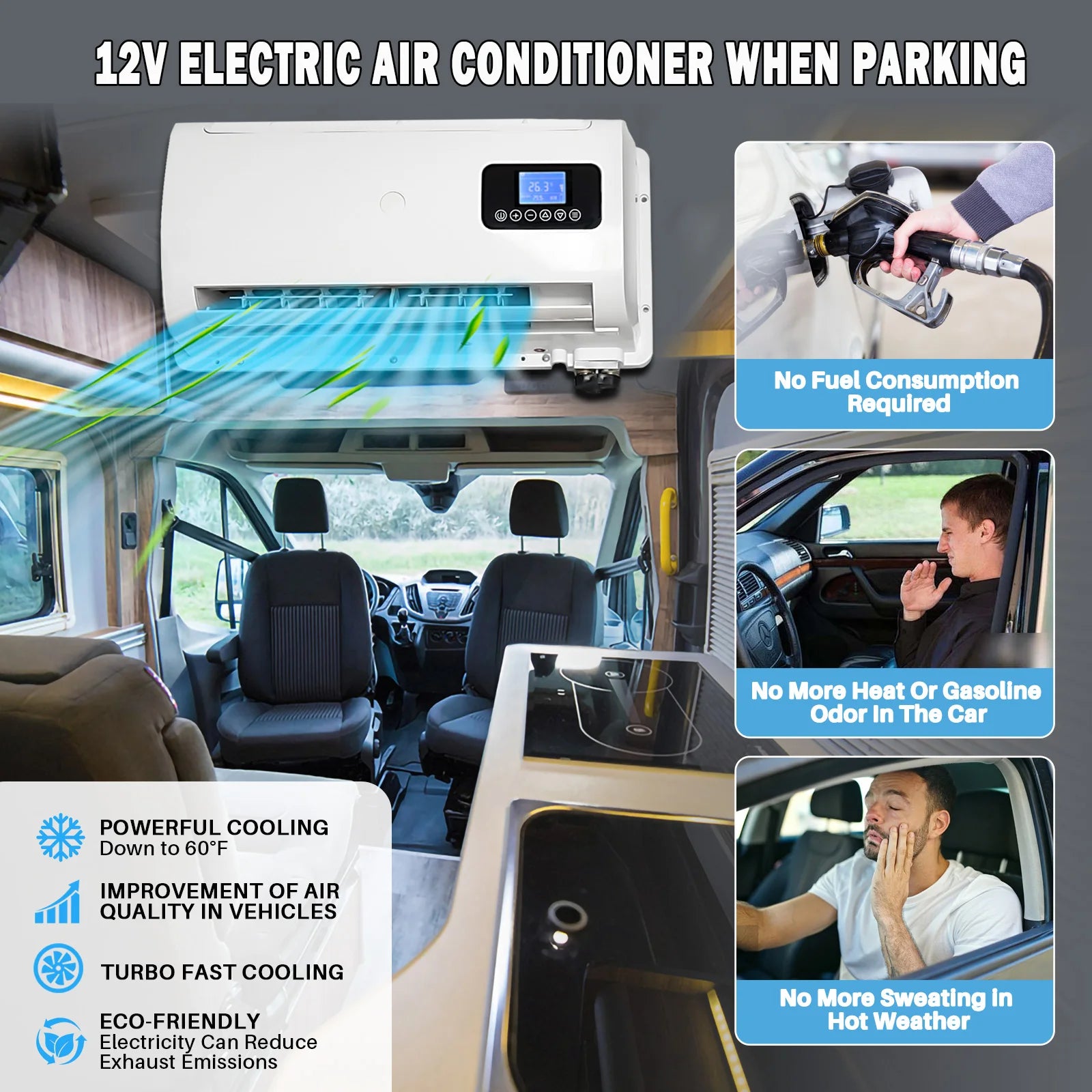 Treeligo 12V/24V 12000BTU Truck Split Air Conditioner Electric Parking Cooler AC Unit For Tractor Cab Truck Camper Van Caravan