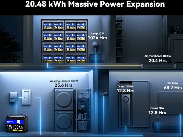 🛡️Scalable:Max. 4S4P, up to 20.48kWh