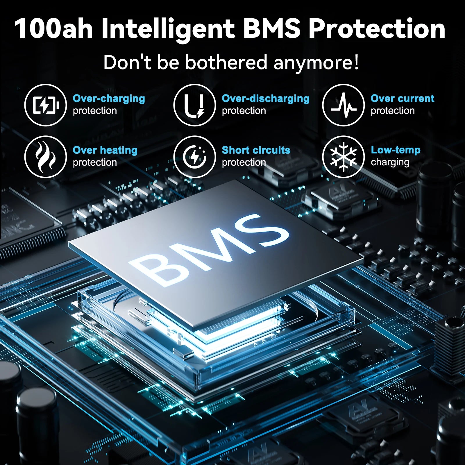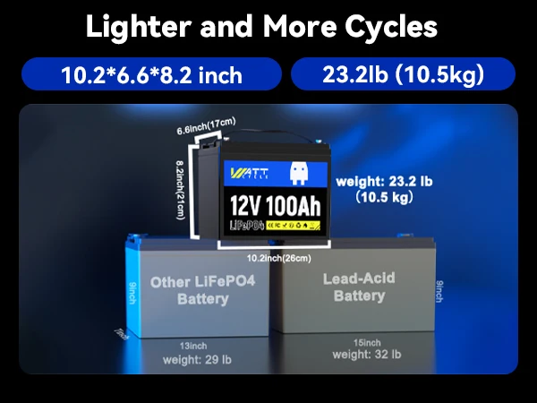 Wattcycle 12V 100AH LiFePO4 Lithium Iron Phosphate Battery Built-in 100A BMS For RV/ Yacht/ Camping/ Off-Grid/ Back-up Power