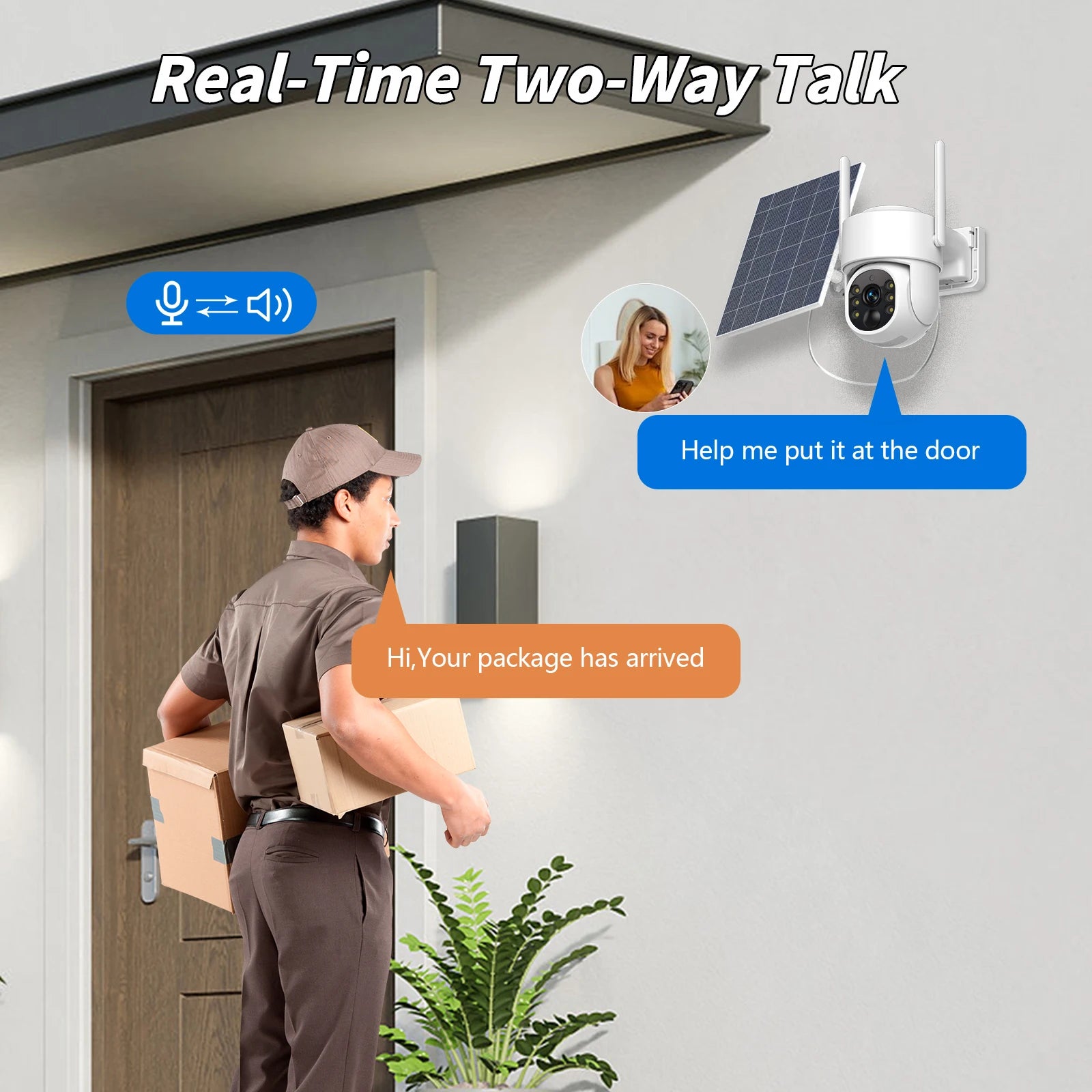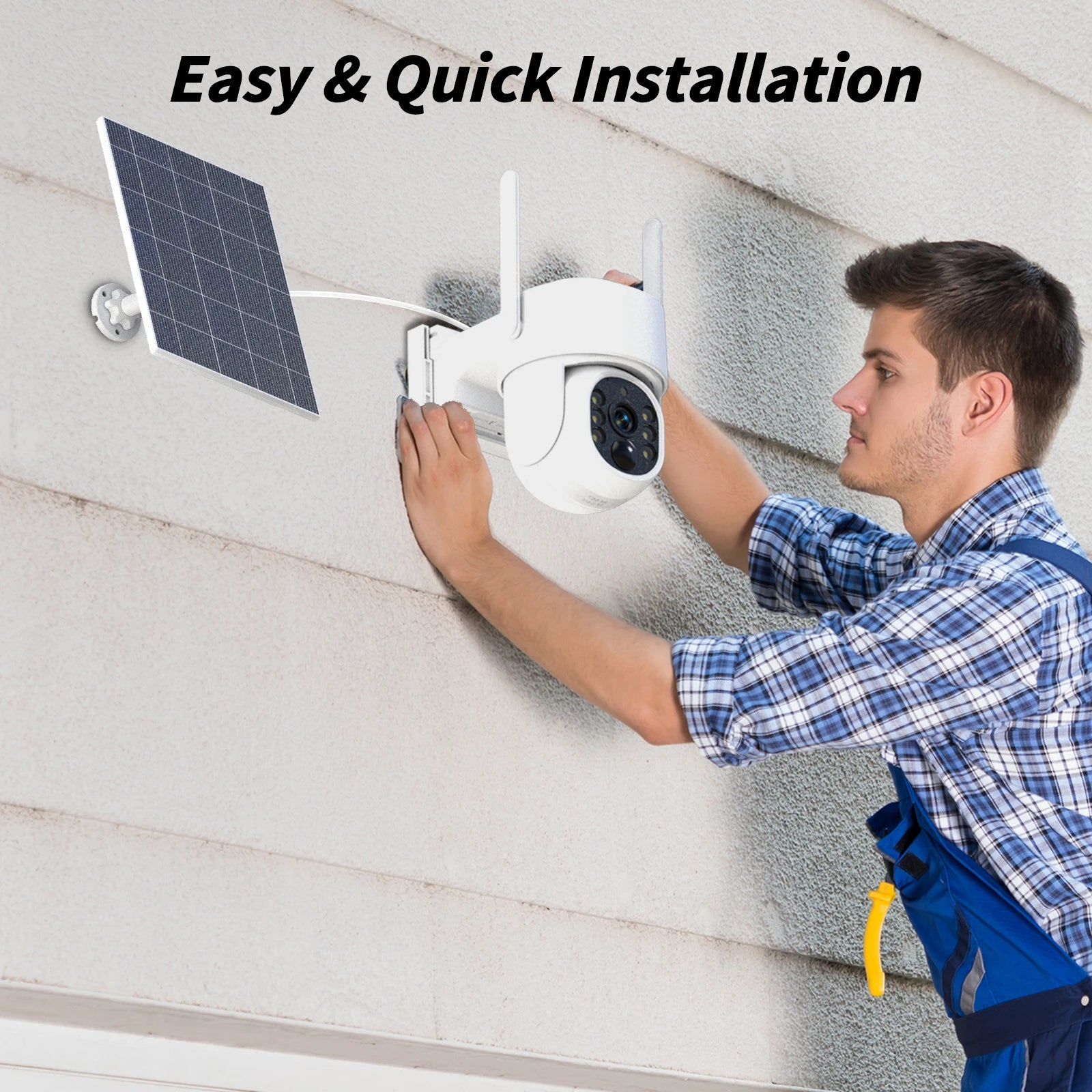 WESECUU WiFi PTZ Camera Outdoor Wireless Solar IPCamera 4MP HD Built-in Battery Video Surveillance Camera Long Time Standby