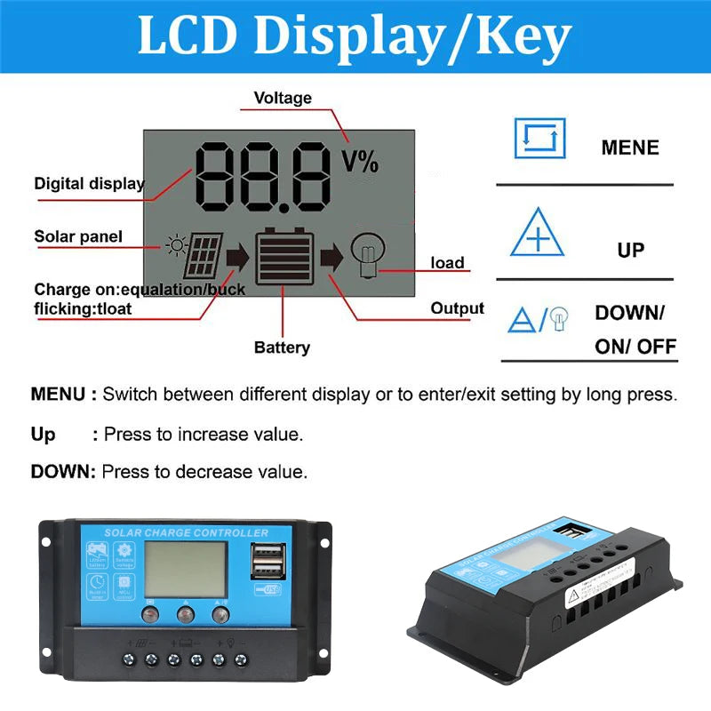 00W Solar kit Included Components : ‎1pcs solar panel, 1pcs 10A controller, 1 set Alligator clip cable, 1 set m c 4 cable