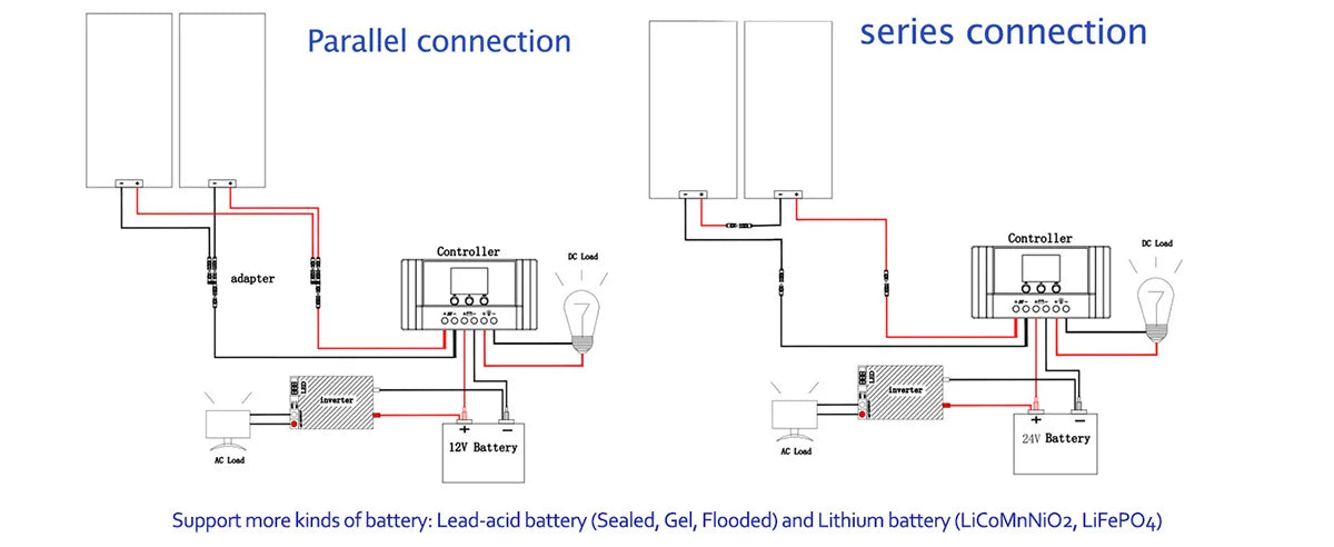 [Compatible with for a variety of batteries] Lead-acid battery (Sealed, Gel, Flooded) and Lithium battery (LiCoMnNiO2, LiFePO4),Multiple protection functions can better protect the battery.
